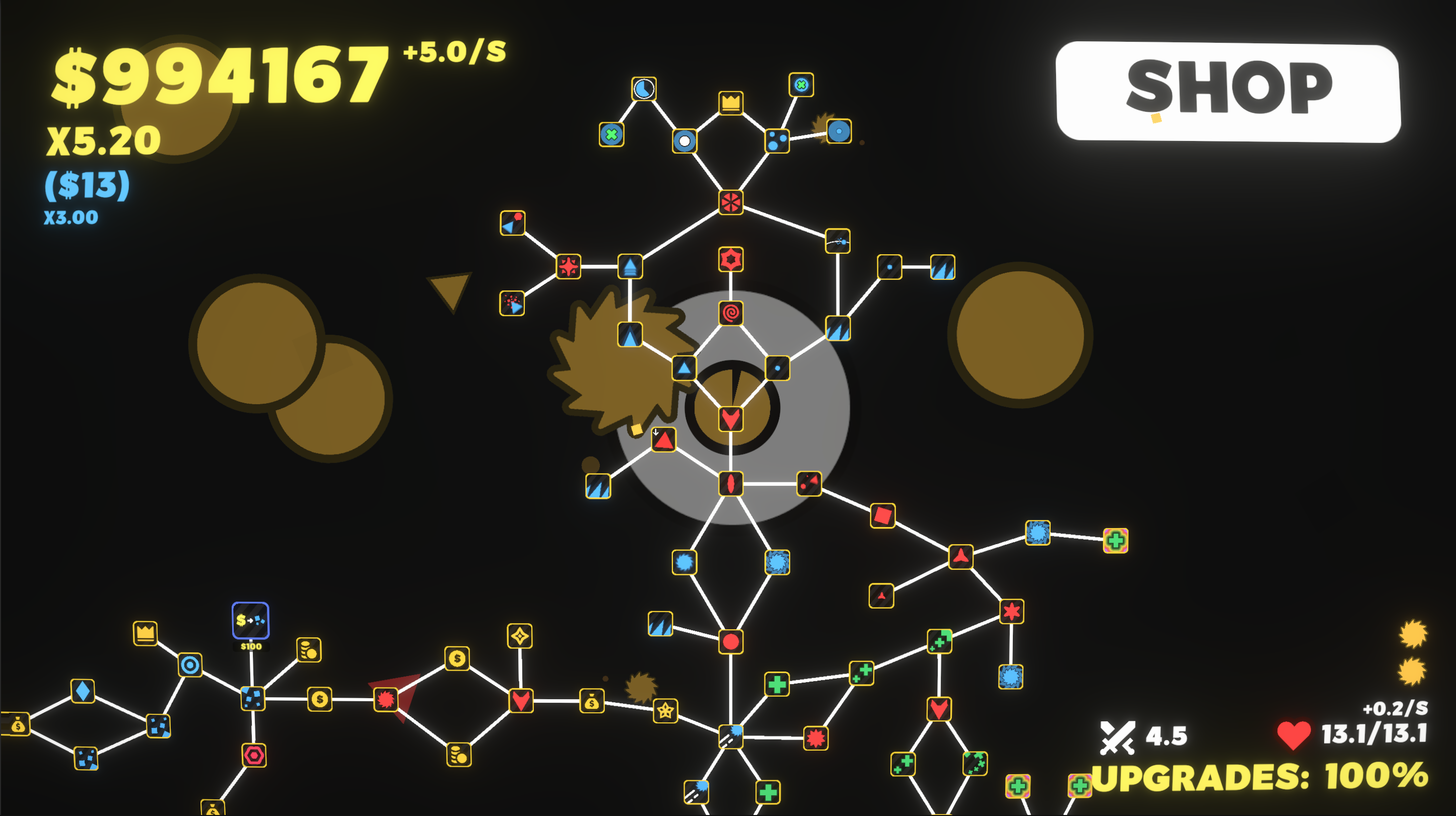 but literally got killed my myself (worst enemy ever) pretty far towards the end, only had to buy the top 40 bucks upgrade, the 4th east health upgrade for like 830. and the final win upgrade for 1000.